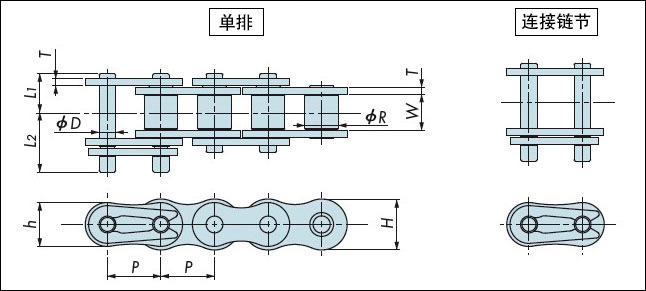 注) 1.本產(chǎn)品屬于超微型鏈條,在操作上較一般尺寸產(chǎn)品有很大的區(qū)別。選型和操作等相關(guān)事項請聯(lián)系客戶進行咨詢。 2.銘牌上沒有鋼印。 3.銷不用鉚釘緊固。 4.我們不建議使用連接鏈節(jié),因其不易安裝。 5.無過渡鏈節(jié)。 6.只能以一個單元的鏈節(jié)的倍數(shù)訂貨。 7.鏈節(jié)為偶數(shù)時,使用外鏈節(jié)進行兩端的連接。 (不使用連接鏈節(jié)。) 但當鏈節(jié)不足80節(jié)時,需使用連接鏈節(jié)連接兩端。就鏈條兩端的連接方式,如有疑問請聯(lián)系客服進行咨詢。鏈節(jié)為奇數(shù)時,使用內(nèi)鏈節(jié)進行兩端的連接。 上述以外的構(gòu)成,請聯(lián)系客服進行咨詢。 |