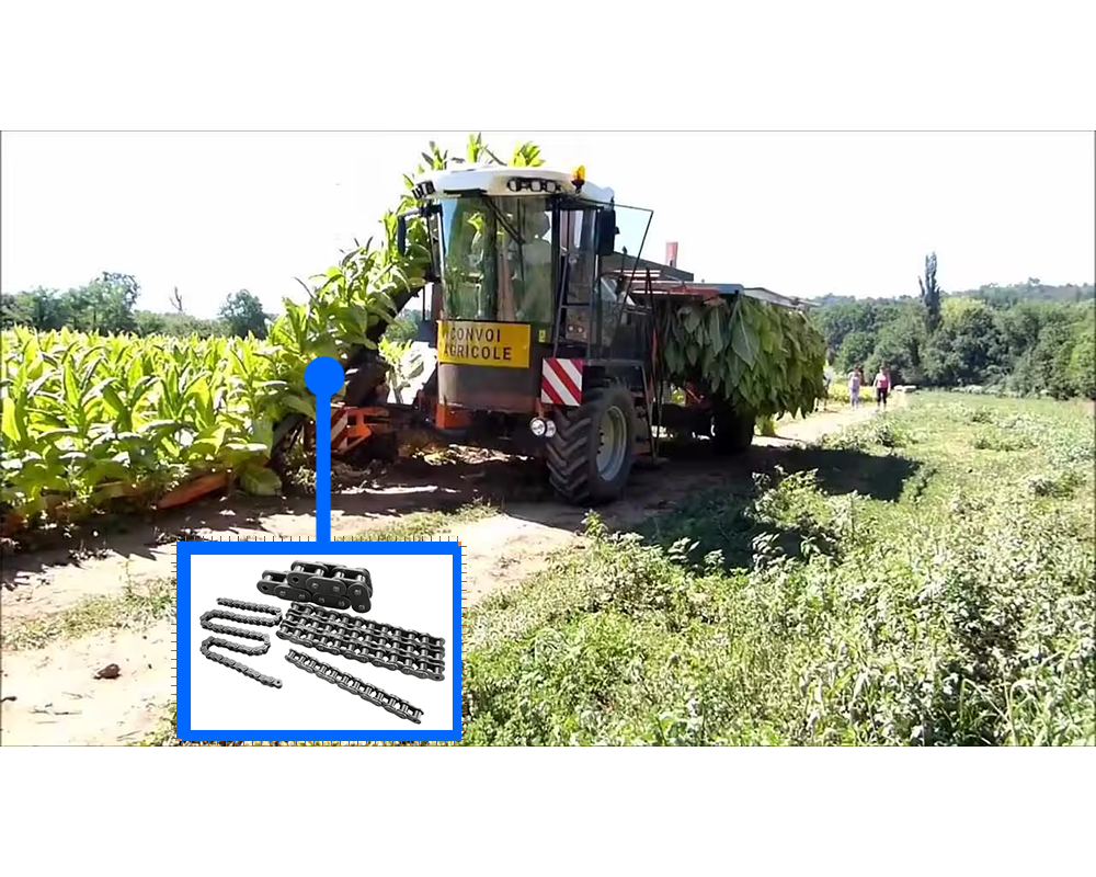 煙草收割所使用的部件如煙葉采收抱煙機(jī),其傳動鏈能夠有效幫助驅(qū)動收割部件進(jìn)行收割。