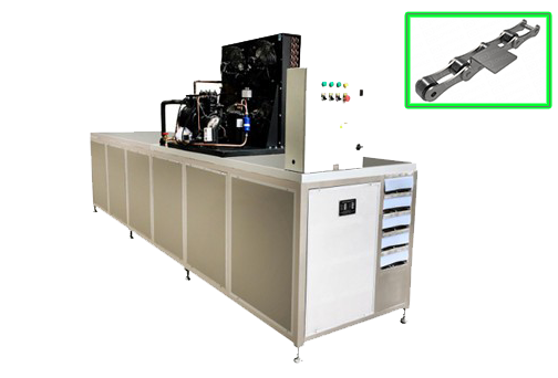 糖果和巧克力都具有遇熱則融遇冷則凝的特性,因此為加快糖果和巧克力的凝固成型,因此需要對其進(jìn)行冷凍處理。為保證冷凍的速率,糖果·巧克力隧道式速凍機(jī)便應(yīng)運(yùn)而生,通過搭配耐低溫的速凍隧道鏈條將已經(jīng)注入模具的糖果·巧克力運(yùn)輸?shù)剿淼朗剿賰鰴C(jī)內(nèi),依靠低溫使糖果或者巧克力快速凝聚成型。