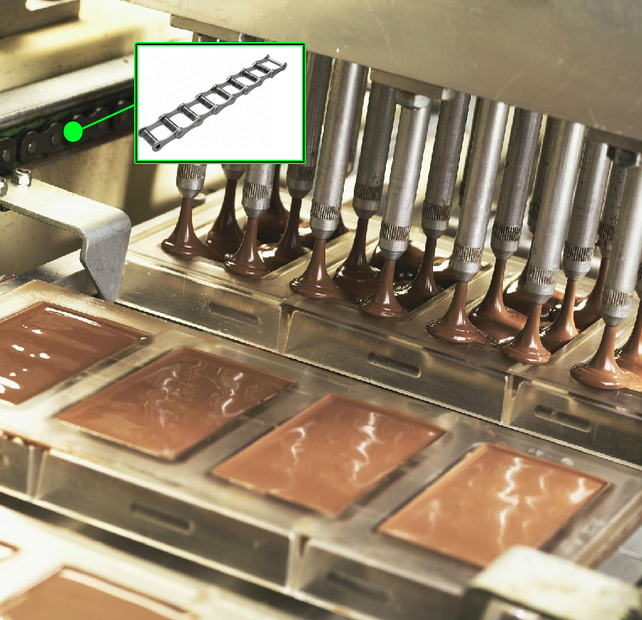糖果·巧克力澆筑線糖果行業(yè)中糖果·巧克力制造的重要一環(huán),依靠糖機(jī)鏈條或巧克力食品成型機(jī)械鏈條的精確移動,糖機(jī)自動澆筑線可以將相同分量的糖果·巧克力原料完美的注入到模具之中,使生產(chǎn)出來的糖果·巧克力外形以及分量基本一致。