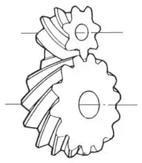齒生成以螺旋線的方式圍繞在圓柱體上,稱作斜齒輪。斜齒輪是逐漸進(jìn)入嚙合的,比直齒輪傳動(dòng)更平穩(wěn),承載能力更強(qiáng),主要用于對(duì)噪音要求更高的場(chǎng)合,比如汽車、高速傳動(dòng)等。平行軸斜齒輪的效率可達(dá)97%~99.5%,速比通常設(shè)計(jì)在1~10范圍內(nèi),線速度最高可達(dá)200m/s以上(需采用更高的加工精度),支撐軸承同時(shí)承受徑向力和軸向力。