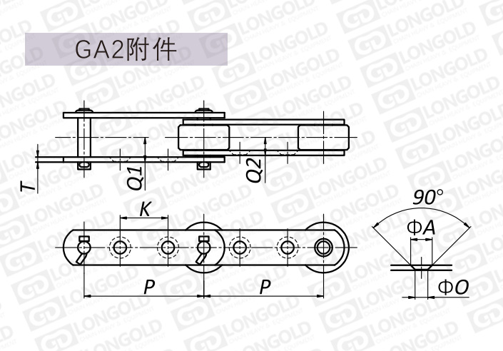 不同于尋常軸承滾子鏈,帶GA2附件軸承滾子鏈的鏈板上有兩個(gè)孔。