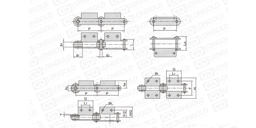 鏈條節(jié)距為非常用規(guī)格,裝配類(lèi)似A1/A2或K1/K2的附件,用于物料的輸送。