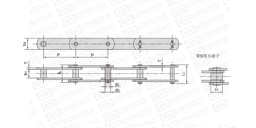 上圖為帶S滾子FV系列標(biāo)準(zhǔn)輸送鏈的結(jié)構(gòu)圖。