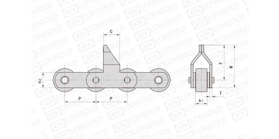 滾子類型:小滾子(滾子直徑小于鏈板高度)、大滾子(滾子直徑大于鏈板高度)、帶F邊滾子。