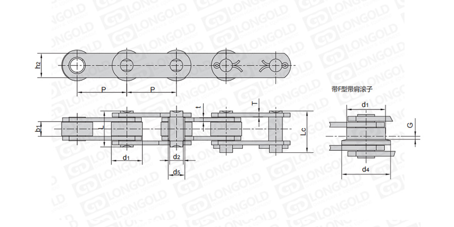 上圖為帶F型帶邊滾子Z系列標(biāo)準(zhǔn)輸送鏈的結(jié)構(gòu)圖。