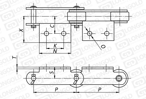 附件可配裝在每一個鏈節(jié)以上的鏈節(jié)間隔,如每偶數(shù)鏈節(jié)安裝,為了容易進行保養(yǎng),安裝在外鏈節(jié)。