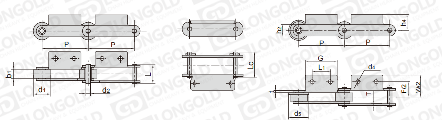 鏈條節(jié)距為非標(biāo)規(guī)格,需要安裝特定的附件,以用于物料的輸送。