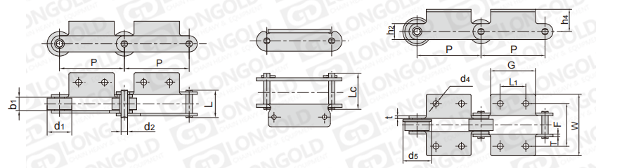 鏈條節(jié)距為非標規(guī)格,需要安裝特定的附件,以用于物料的輸送。