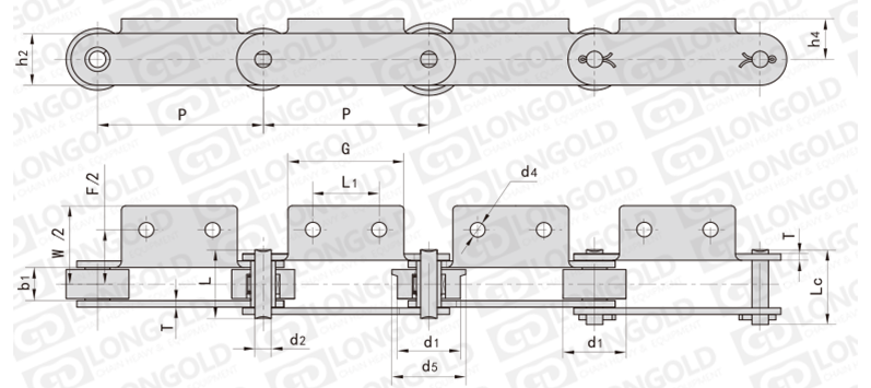 鏈條節(jié)距為非標(biāo)規(guī)格,需要安裝特定的附件,以用于物料的輸送。
