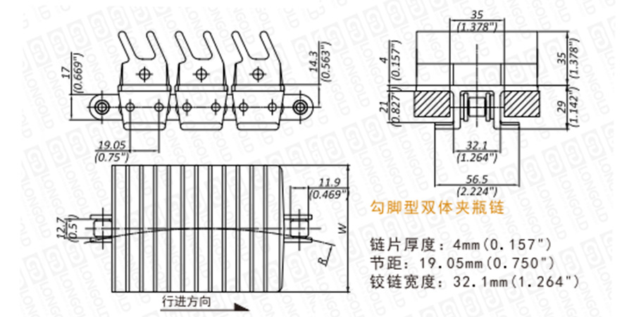上圖為LDGU1873T系列雙體鏈的結(jié)構(gòu)圖,圖紙已標明本體尺寸。