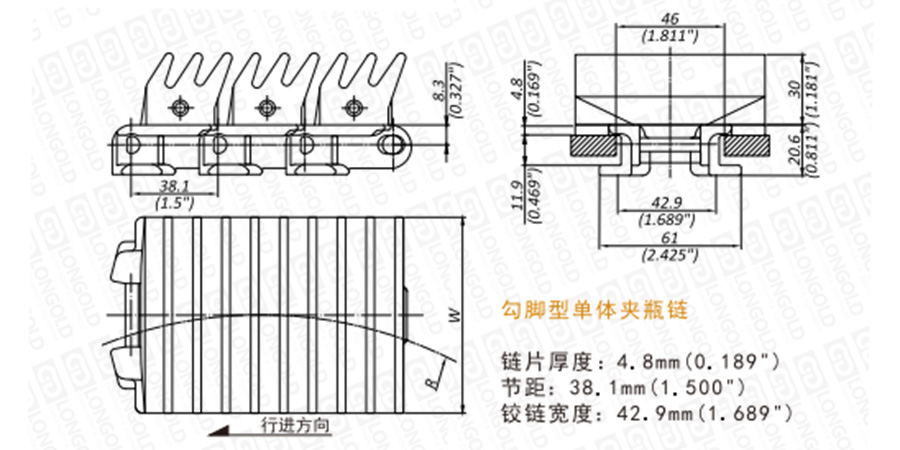 上圖為LDGW878T系列 一體式夾瓶鏈的結(jié)構(gòu)圖,圖紙已標明本體尺寸。