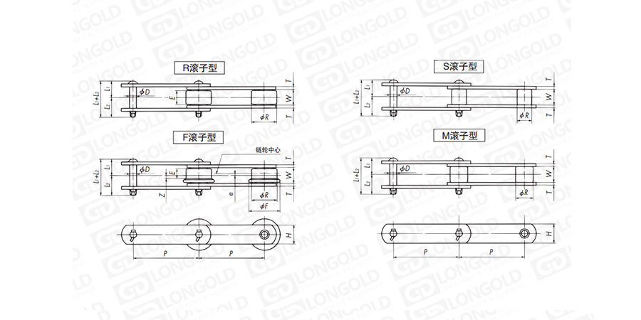 (2)滾子形式:R=大滾子 S=小滾子 F=F滾子 M=M滾子 N=N滾子