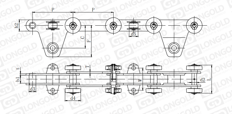 附件是為了將夾具安裝在鏈條上的零部件??筛鶕?jù)客戶要求設(shè)定安裝間隔。