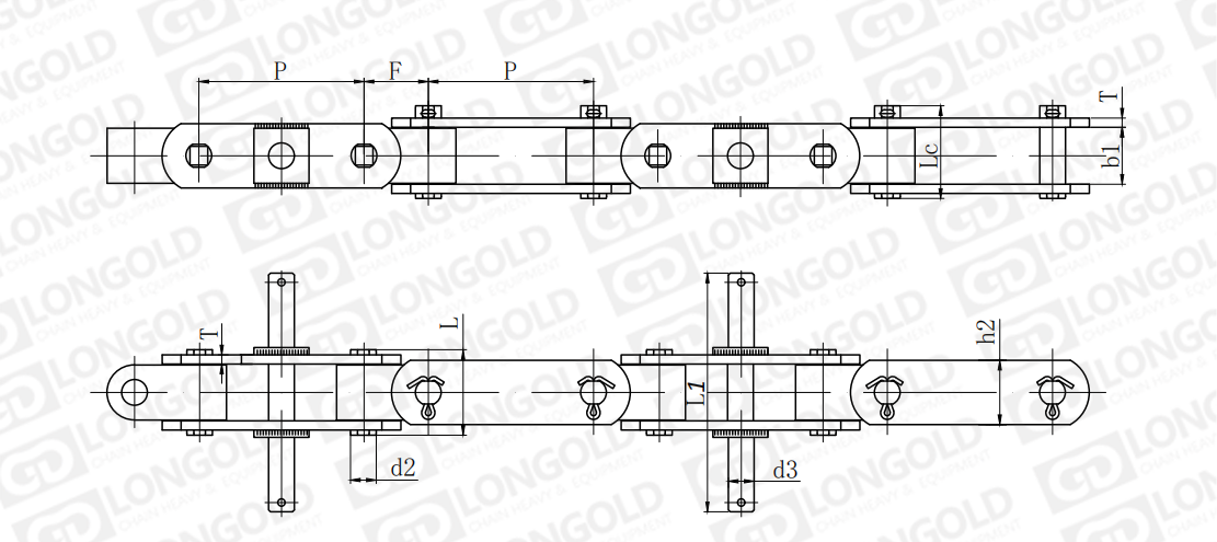 附件可配裝在每一個(gè)鏈節(jié)以上的鏈節(jié)間隔,如每偶數(shù)鏈節(jié)安裝,為了容易進(jìn)行保養(yǎng),安裝在外鏈節(jié)。