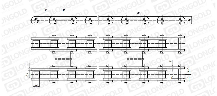 鏈條為雙排結(jié)構(gòu),能大大提升鏈條的承載能力,使鏈條的運(yùn)輸具備更高的穩(wěn)定性。
