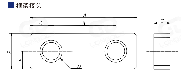 倍速鏈條用鋁制框架,用于滾子部采用工程塑料的倍速鏈條,包括帶蓋罩的倍速鏈條。在鋁制框架的輸送側(cè)小直徑滾子部安裝有鋼軌,可用于所有倍速鏈條??蚣芙诸^是用來連接框架的螺栓形零件。