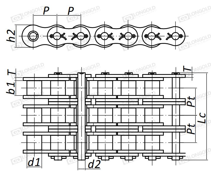 載荷較大時(shí)可選用雙排鏈或者多排鏈,但排數(shù)一般不超過三排或四排,以免由于制造和安裝誤差的影響使各排鏈?zhǔn)茌d不均。
