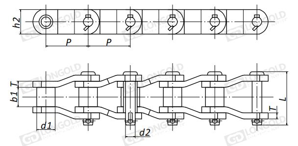 特殊的彎鏈板結構更適于帶有較大沖擊性的載荷傳動。