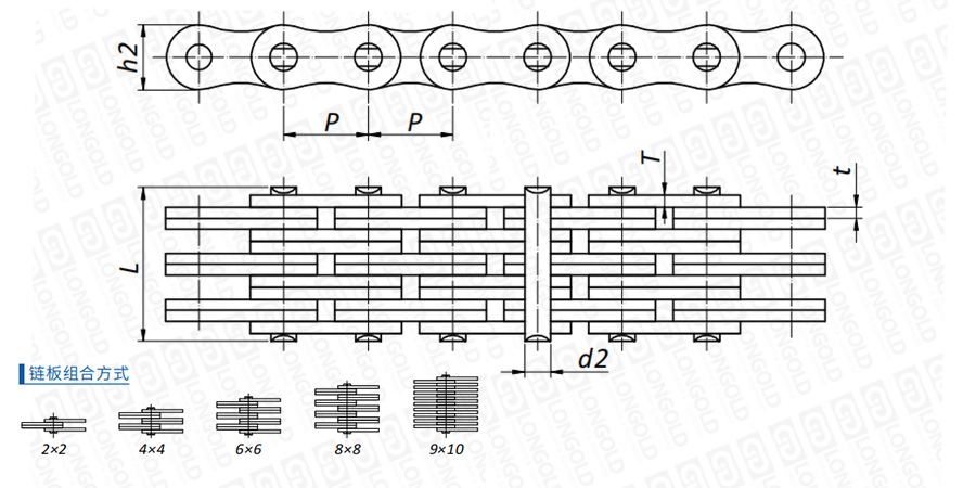 板式鏈條僅由鏈板和銷子構(gòu)成。鏈板被銷子連接起來,承受鏈板受到的張力。