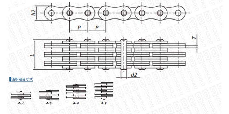 板式鏈條僅由鏈板和銷子構(gòu)成。鏈板被銷子連接起來,承受鏈板受到的張力。