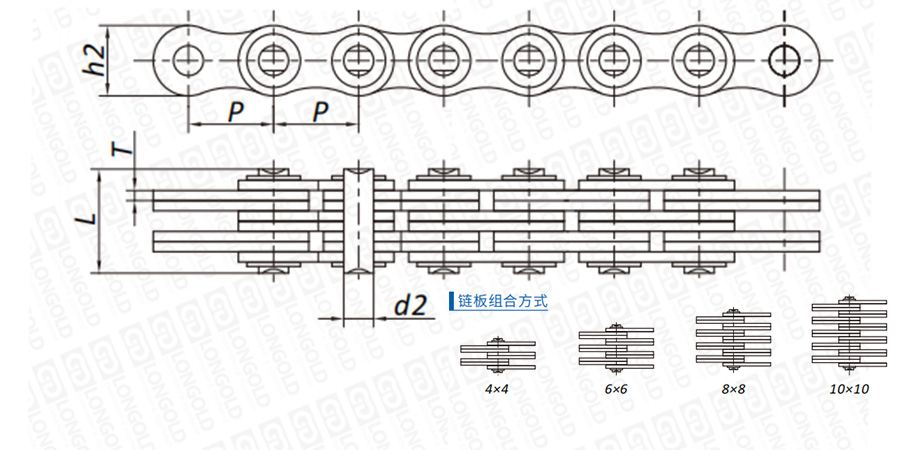 非標(biāo)LL系列板式鏈II是一種輕系列板式鏈,適于直線往返傳動(dòng)結(jié)構(gòu)。