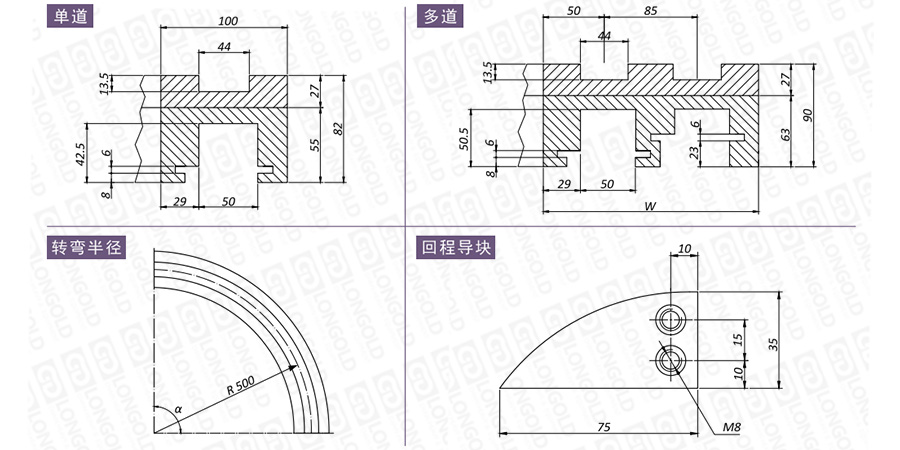 在選擇軌道時(shí),需要考慮安裝尺寸、材質(zhì)性質(zhì)、轉(zhuǎn)彎角度等因素,如有需要,請(qǐng)咨詢隆德技術(shù)人員。