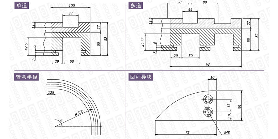 在選擇軌道時(shí),需要考慮安裝尺寸、材質(zhì)性質(zhì)、轉(zhuǎn)彎角度等因素,如有需要,請(qǐng)咨詢隆德技術(shù)人員。