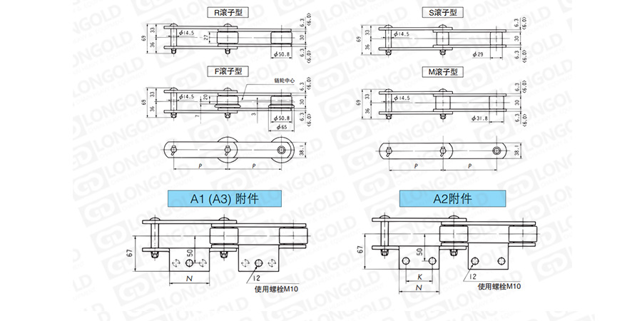 (2)滾子形式:R=大滾子? S=小滾子? F=F滾子? M=M滾子