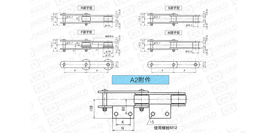 (2)滾子形式:R=大滾子  S=小滾子  F=F滾子 M=M滾子