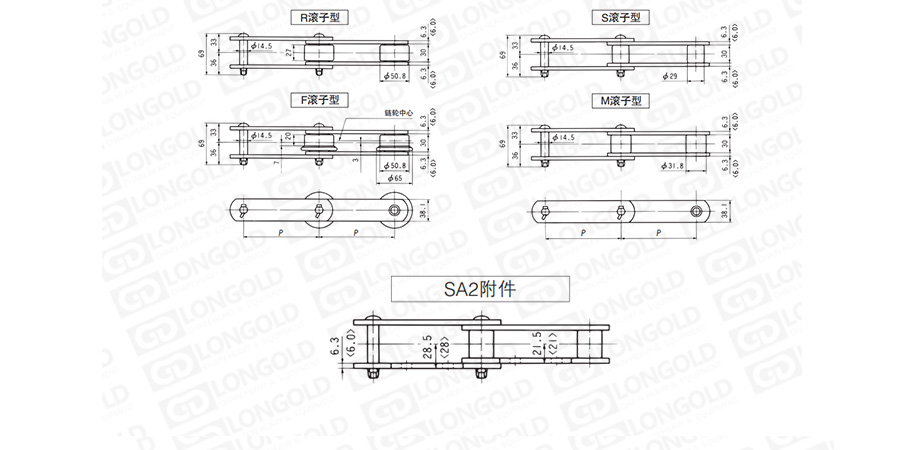 (2)滾子形式:R=大滾子  S=小滾子  F=F滾子 M=M滾子