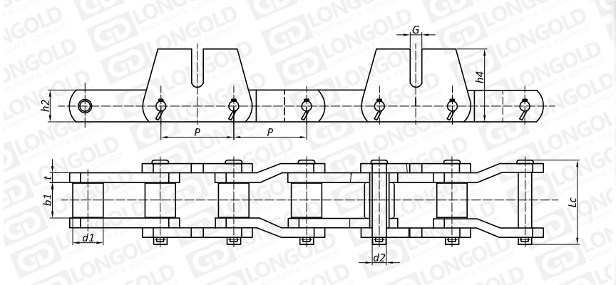 附件可配裝在每一個(gè)鏈節(jié)以上的鏈節(jié)間隔,如每偶數(shù)鏈節(jié)安裝,為了容易進(jìn)行保養(yǎng),安裝在外鏈節(jié)。