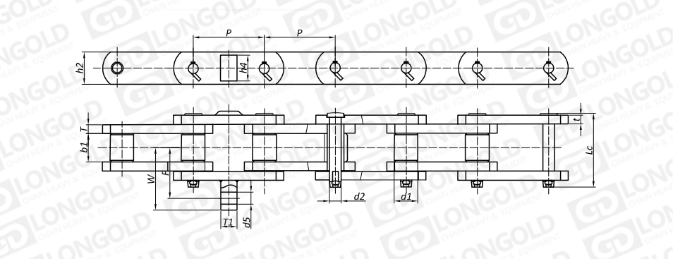 附件可配裝在每一個(gè)鏈節(jié)以上的鏈節(jié)間隔,如每偶數(shù)鏈節(jié)安裝,為了容易進(jìn)行保養(yǎng),安裝在外鏈節(jié)。