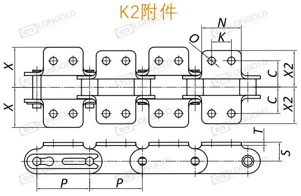 帶K2附件雙倍節(jié)距輸送鏈