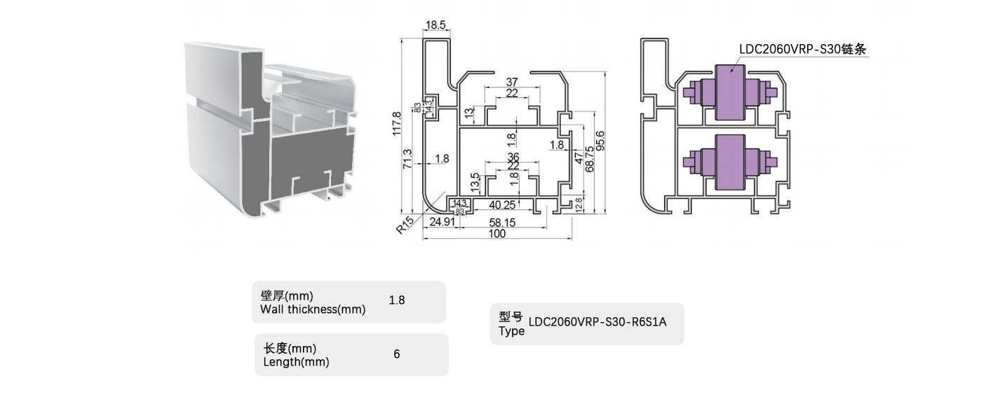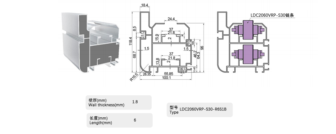 在鋁制框架的輸送側(cè)小直徑滾子部安裝有鋼軌,可用于所有倍速鏈條。