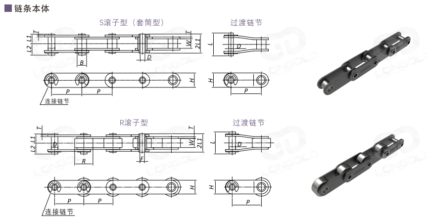 (2)鏈條本體的滾子類型:R=R滾子,S=S滾子
