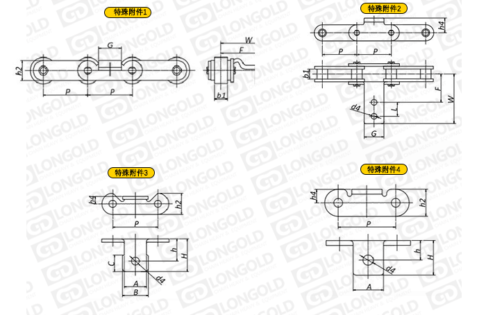 附件是為了將夾具安裝在鏈條上的零部件??筛鶕?jù)客戶(hù)要求設(shè)定安裝間隔。