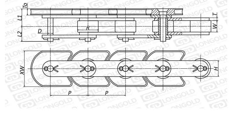 帶月牙鎖雙倍節(jié)距輸送鏈