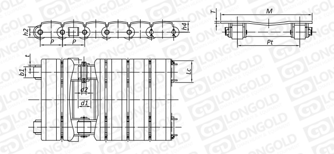 鏈條本體滾子類型有大滾子和帶F型邊滾子,鏈條的節(jié)距多為非標(biāo)節(jié)距。