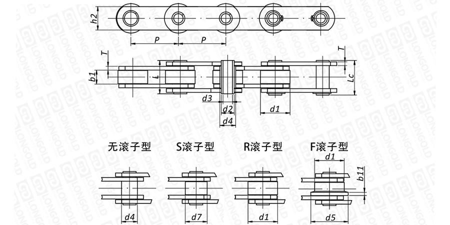 可根據(jù)用途安裝多類滾子,分為:無滾子、S型小滾子、帶P型大滾子、F型帶肩滾子。