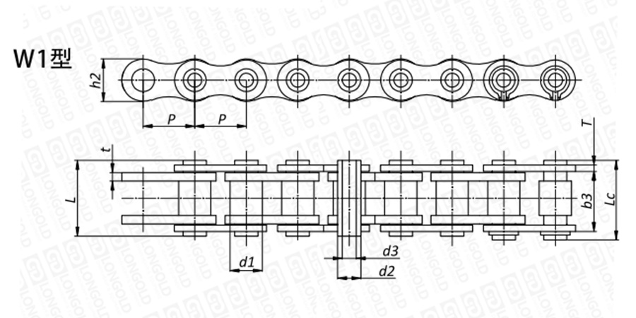 上圖為不銹鋼空心銷軸鏈W1型的結(jié)構(gòu)圖。