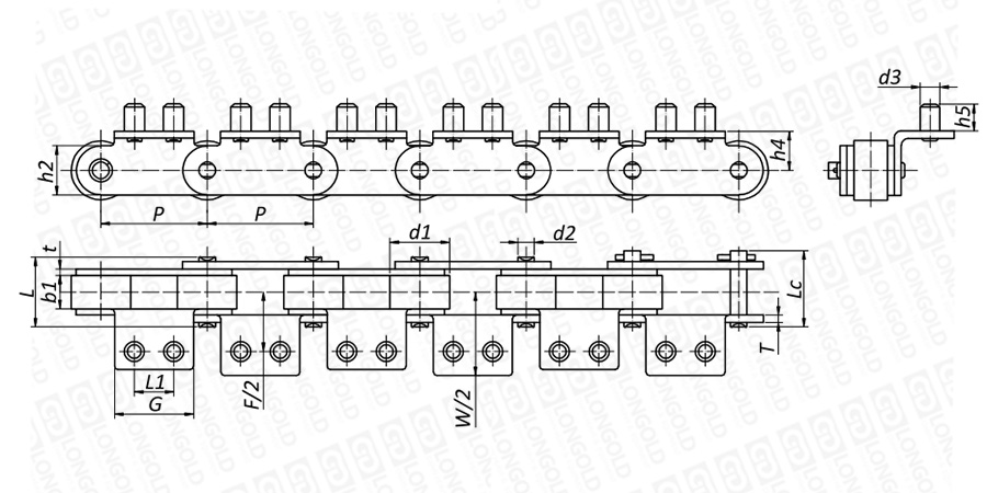 鏈條一側(cè)帶A2螺柱附件。