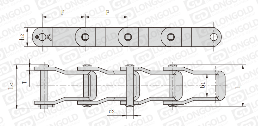 鏈節(jié)由可鍛鑄鐵鑄成并用鋼銷(xiāo)軸連接起來(lái),沒(méi)有內(nèi)外鏈節(jié)之分。