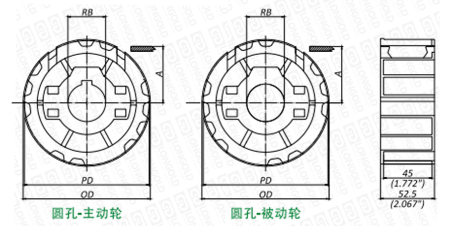 注:英制圓孔主動(dòng)輪提供固定螺栓,公制不提供。