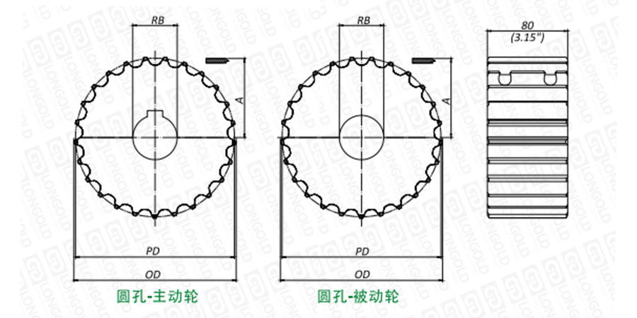 注:英制圓孔主動輪提供固定螺栓,公制不提供。