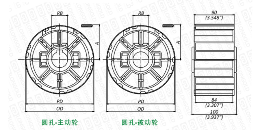 注:英制圓孔主動輪提供固定螺栓,公制不提供。