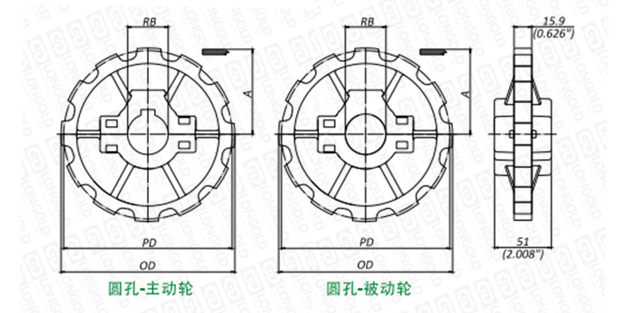 上圖為880系列鏈輪-注塑分體式主動(dòng)輪以及被動(dòng)輪的結(jié)構(gòu)圖。