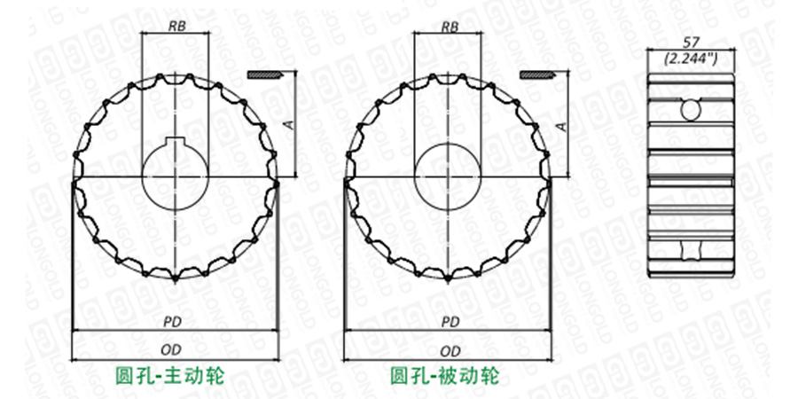 上圖為9157系列鏈輪主動輪以及被動輪的結(jié)構(gòu)圖。
