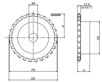 上圖為A60系列鏈輪的結(jié)構(gòu)圖。