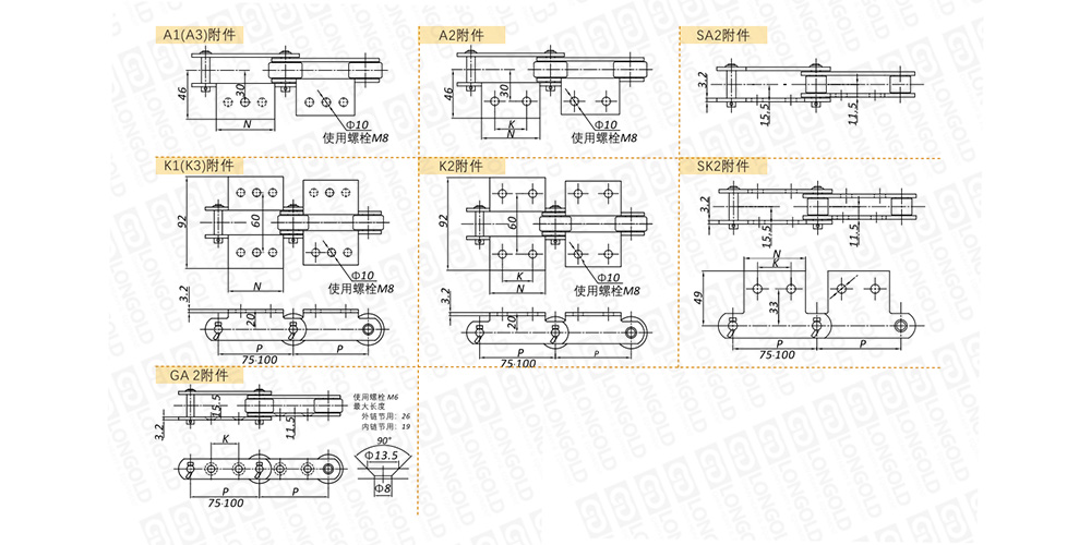 ■鏈條本體結(jié)構(gòu)及附見種類詳見如上圖